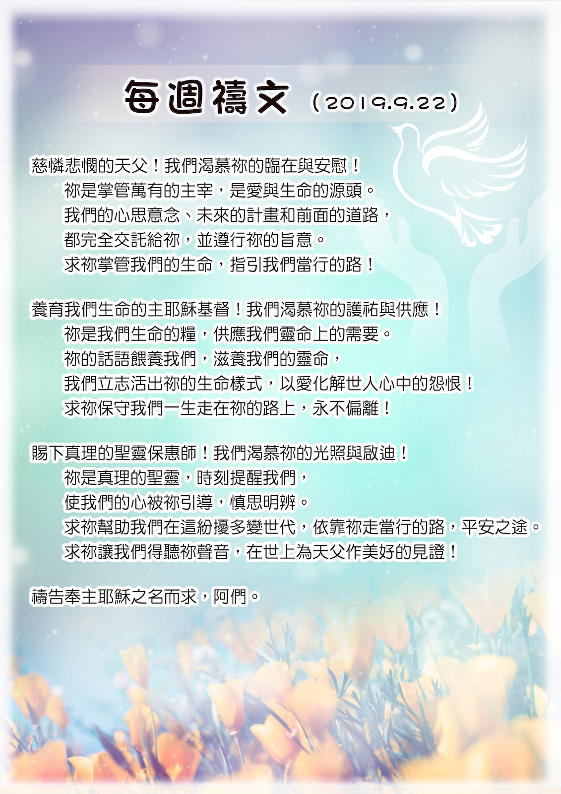 [每週禱文] 2019年9月第4週