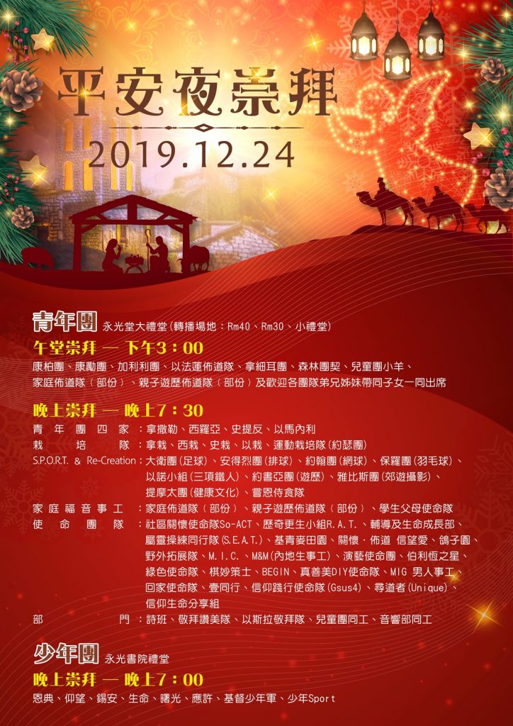 青年團平安夜崇拜的主題是 「等候及欣迎光明到臨」;