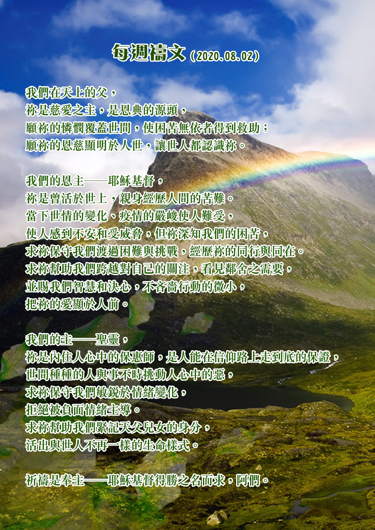 [每週禱文] 2020年8月第1週