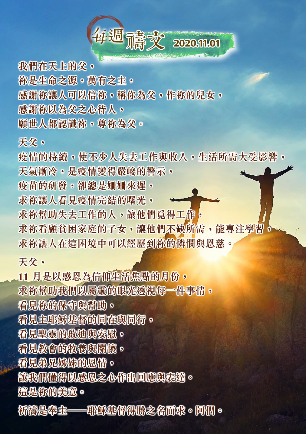 [每週禱文] 2020年11月第1週